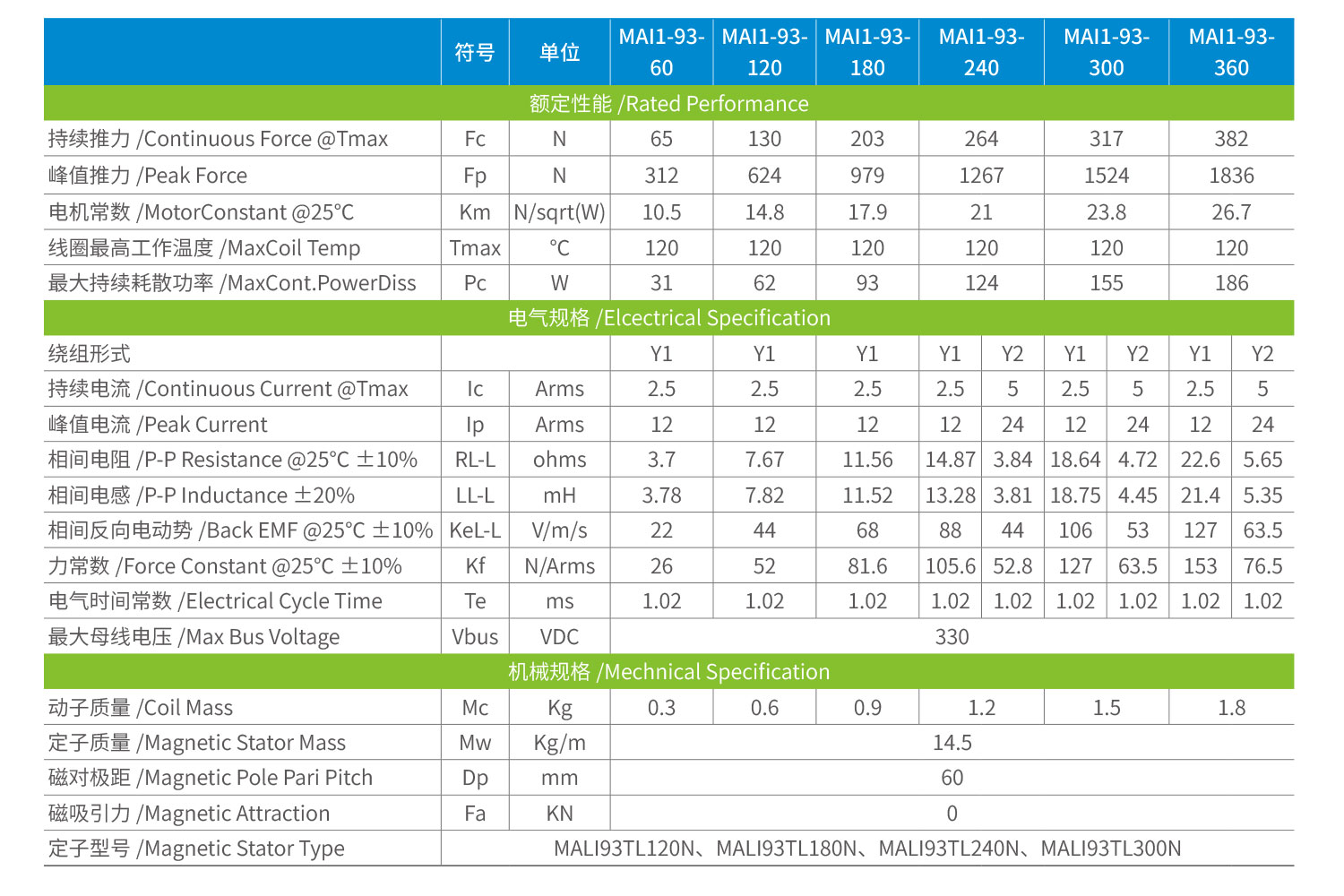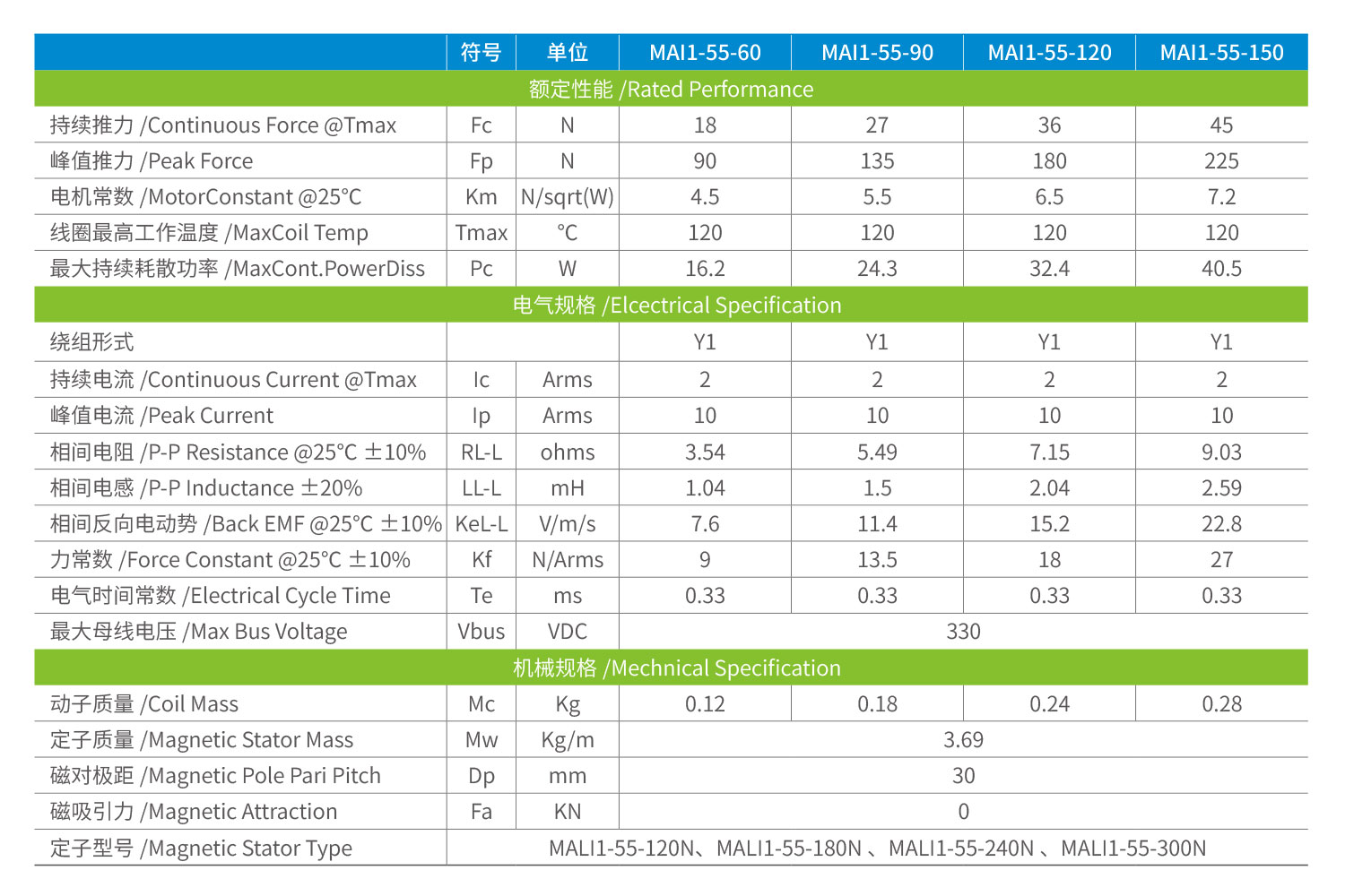 無鐵芯直線電機由線圈組成的電機動子和永磁體的定子組成,由于動子沒有鐵芯,因此其重量輕,動子和定子之間沒有磁吸力,沒有齒槽效應,可以實現很高的加速度和極高的運行平穩性;動子和定子之間為非接觸式,不存在機械傳動限制,因此具有高系統動態性能、平穩的運行速度和高定位精度、無磨損或免維護、無限行程等優點。