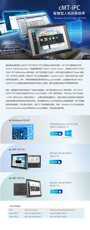 cMT-iPC智慧型人機的新選擇[Windows 10IOT企業版]威綸觸摸屏代理
