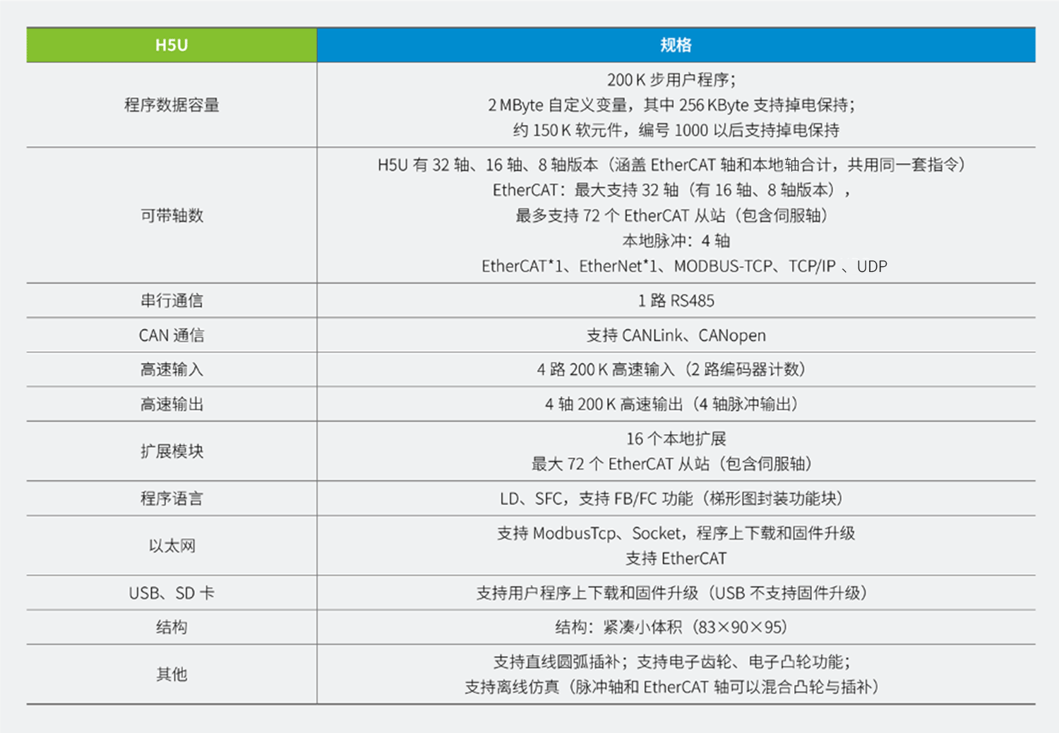 H5U系列EtherCAT總線高性能小型PLC