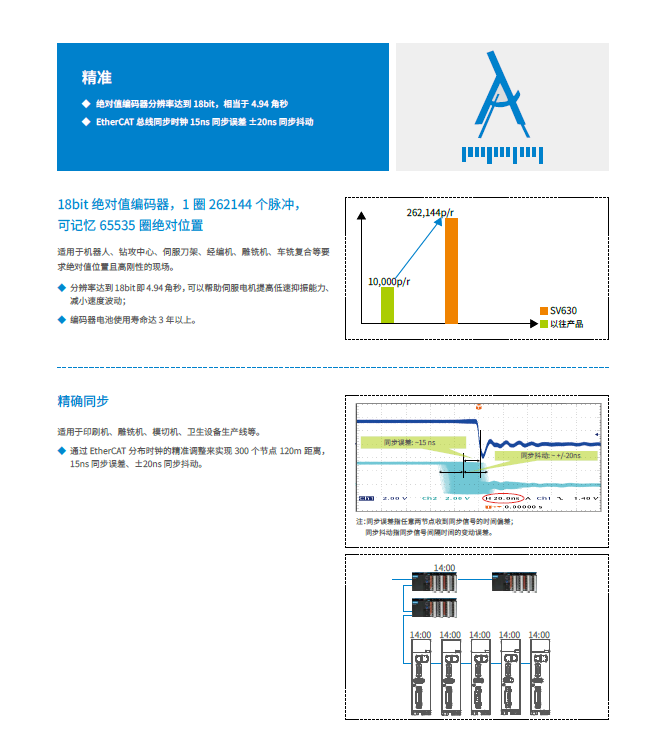 SV630 系列伺服是匯川技術研制的高性能中小功率的交流伺服產品。該系列產品功率范圍為0.05kW ~ 7.5 kW,采用以太網通訊接口,支持EtherCAT 、Modbus、CANopen 和CANLink 等通信協(xié)議,采用對應的通信接口,配合上位機可實現多臺伺服驅動器聯(lián)網運行。
